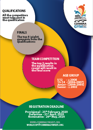 A Federação de Ginástica de Portugal vem por este meio divulgar o Coimbra Gym Fest 2020, que terá lugar em Coimbra, de 26 a 28 de junho.